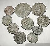 10 Authentic Ancient Roman Coins Group Lot from circa 250-450 A.D. This is a group of 10 authentic ancient Roman coins is from circa 250-450 A.D. A great group for those beginning collecting ancient Roman coins. These are all bronze coins and are as pictured, so what you see is what you get. You can learn a lot of about history looking at these coins and researching them. With the coin flips provided and the paper inserts, the owner of these coins can research these coins online themselves, and write down the information they have found. These are great educational tools, a great beginning or addition to any coin collection and a fun way to learn about history. After researching these coins for a little while, you will see that each emperor and empress had distinct portraits, reverse designs and inscriptions, so virtually all of the coins can be identified to a reigning ruler. This is an amazing low-cost way to put together a Roman coin collection of a large variety. What you get: 10 Authentic ancient Roman coins